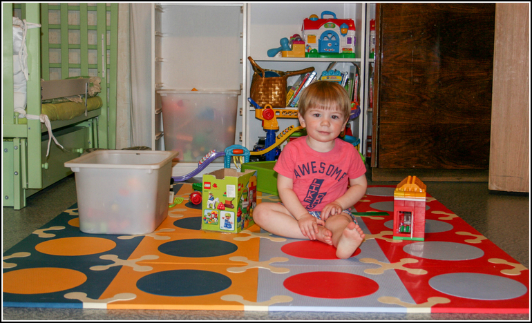 Маша,спасибо за такое подробное описание.Я даже про такой коврик и не знала.Мы брали подобный коврик на http://domo-let.ru/magazin/product/kovrik-pazl-magaziny-ulicy но он собирается просто плитками .А тут целый конструктор=)) Вот наш коврик