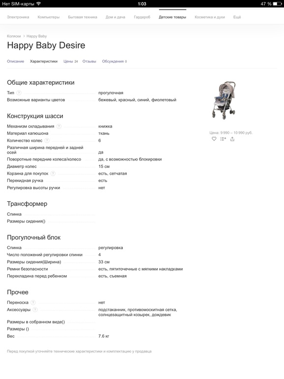 Начну с того, что изначально хотела совершенно другую коляску — babyhit rainbow plus. Но мы с мужем поехали в магазин Оби за стройматериалами и дочка уснула в машине. Было принято решение купить в магазине. Зашли в Детский мир в Меге. Доча спит на руках. Осмотрев весь диапазон колясок остановилась на baby happy desire. Купила коляску за 7 тыс. Нам в магазине её тут же собрали. Первые полчаса катания по ТРЦ запиналась об колеса коляски. Но потом привыкла. Достоинства:* лёгкий вес — 7,4 кг, что для меня очень важно, т.к. прогулочная коляска уже имеется основная (jane slalom pro 2 в 1) и хотелось попроще, полегче. * спинку можно опустить до почти горизонтального, если ребёнок уснет. * хорошие 5-точечные ремни. * козырек опускается почти до бампера. * перекидная ручка для мамы (ребенок может смотреть на мир или на маму). Недостатки:* отсутствует чехол на ножки (у babyhit rainbow plus он есть). * маленькая корзина (пакет с продуктами туда не засунуть, посередине идет перекладина). * очень неудобно заезжать, съезжать с бордюров. * ручка для мамы не регулируется.