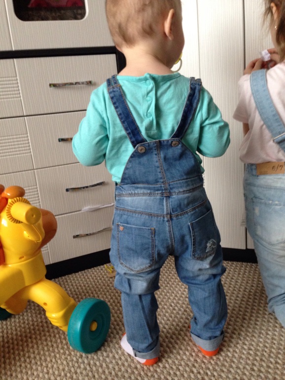 На младщей красивый комбинезон, прям своей захотелось. А на стпршей плохо взади сидит