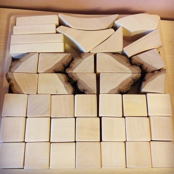 я увидела такой конструктор деревянный в садике, мой любит в него играть... тнабрала в нете "деревянный конструктор" — оиск выдавал все не то... потом начала шерстить магазины, и в Детях удачно нашла такое ведерко... мой башни строит редко — в основном использует как груз для машин.) Реально классный конструктор.