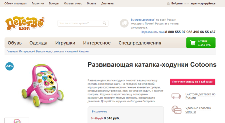 Каталка-ходунки cotoons smoby 3345 детство-шоп