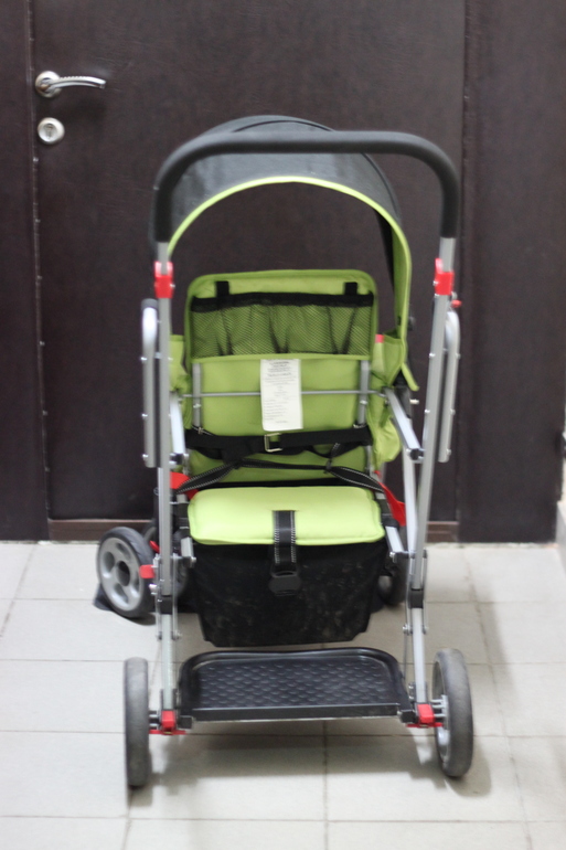 Купили эту коляску в январе. В Москве используем 1-2 раза в неделю, когда ходим с дочкой на занятия рисованием (30 минут). Чаще дочка стоит на подножке. Я очень довольна этой коляской. Это единственная из известных мне колясок, которая подходит для детей разного возраста. Она не намного больше стандартной коляски, но в тоже время старший ребенок может отдохнуть в коляске.