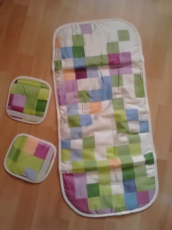 На лето купили для коляски матрасик Mammie. Фотографии пока с телефона. Позже сделаю отдельный пост про этот матрасик. Он с одной стороны хлопковый с рисунком, со второй махровый белого цвета.