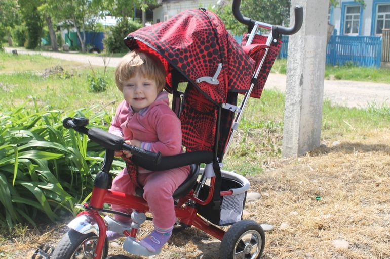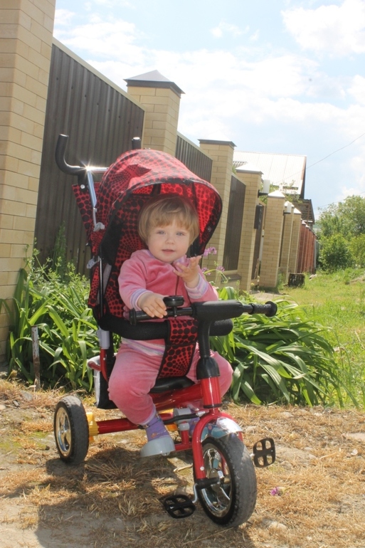 Привет Ирочка, давненько вас не видела, как у Аришеньки дела? У велоса бампер открывается, сидение можно делать в двух подожениях, а если эти разобрали, так цветов много, мне там желтый нравился!