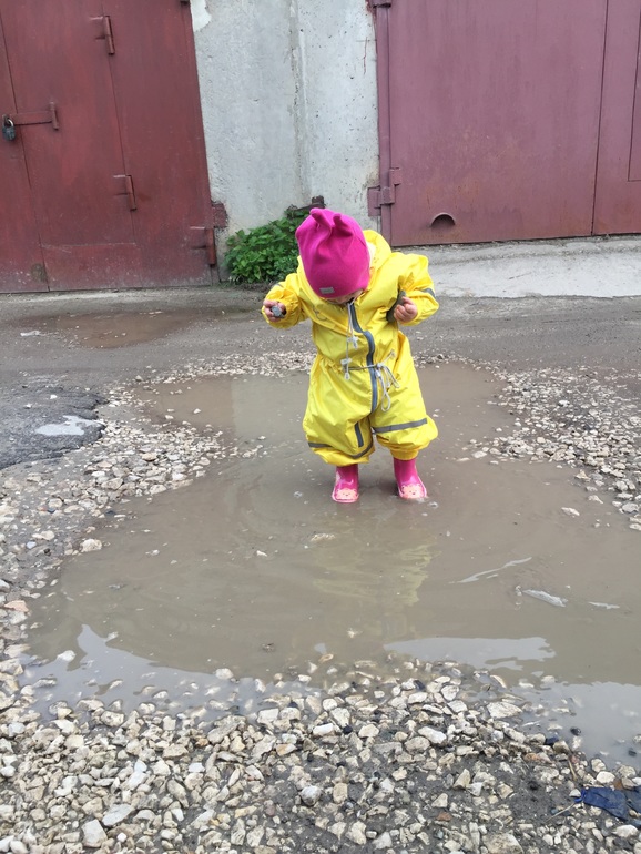 Детская одежданачну с того, что решила я дочери купить комбинезон для дождливой погоды. Остановила свой выбор на российском производителе, вроде и дешевле и цвет радует. Но все оказалось не так уж радужно. Первые впечатления были хорошие, красивый цвет, хорошее качество, швы ровные, есть утяжка и большой капюшон, и на этом плюсы закончились. Дождались мы так сказать луж и пошли его испытывать, сразу скажу что в лужах мы не сидели, а только пару раз скатились с горки, тем не менее в конце прогулки джинсы что были под комбинезоном оказались мокрыми, второй минус ждал после стирки этого комбинезона в стиральной машинке: он просто не отстирался вместе с другими вещами и пришлось мне вручную с мылом для белья стоять его отстирывать. Третий минус из всего отзыва вытекает сам собой: 1300 р+ 200р доставка за комбинезон не выполняющий своей функции это перебор. Плюс после прогулки оказался только то что от грязи он все таки защищает ( но это не то что нам нужно было). Надеюсь мой отзыв окажется кому нибудь полезным и поможет при выборе данного аксессуара. И фото