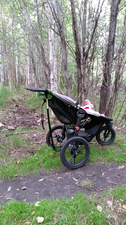 Т.к. коляску брали для зимы, а купили летом, не терпелось ее прокатить по препятствиям. Коляску катали в лесу, по песку, гравию. Тесты прошла идеально.