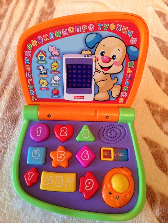 Ноутбук от Fisher Price. Выполняет развлекательную функцию, нажимаем кнопочки и танцуем под него.