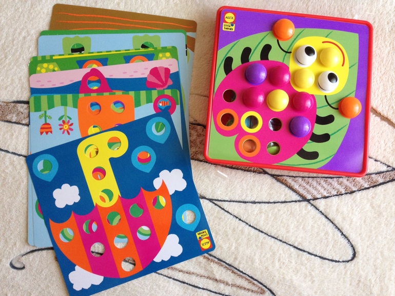 Купила мозаику от Alex Toys, но еще не давала, дам ближе к 2. Детали крупные, яркие, выполнена игрушка качественно.