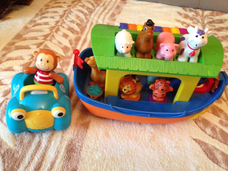 Есть ковчег от Kiddielend, был куплен на годик. Несколько вариантов игры, развивает моторику, каждому животному свое место, крепление в виде пазла, при нажатии на животное оно издает звук, следом звучит стишок про него. Начинали на данной игрушке изучать животных, а чтобы было не скучно катали их в машинке. В итоге выучили много животных просто развесив фото по квартире и каждый день называя их.