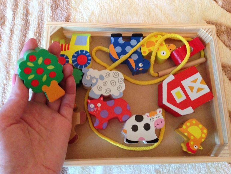 Шнуровка Alex Toys. Сам шнурок просовывать у дочки получается легко, трудности возникают протянуть его дальше, помогаю ей немного.