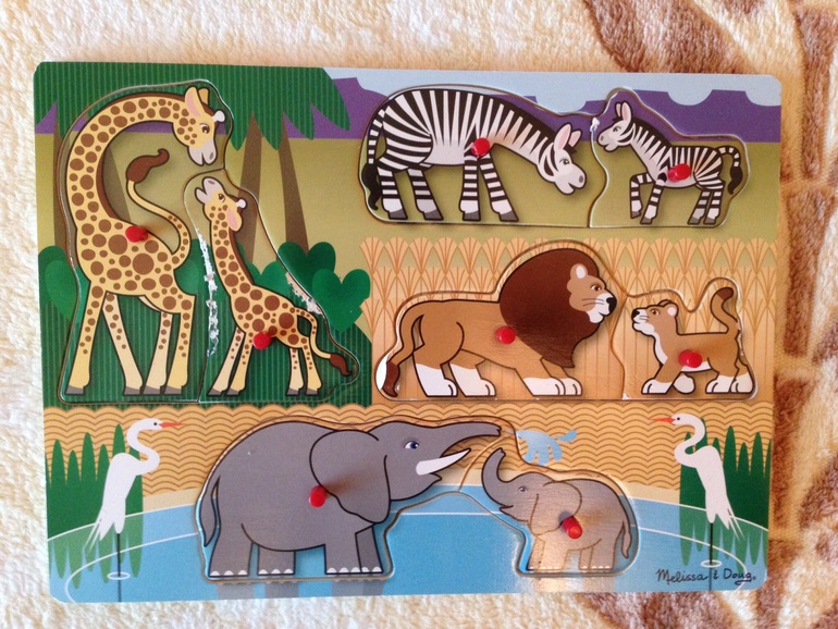 Рамка вкладыш от Janod с озвучкой животных. И большой-маленький от Mellisa&doug.