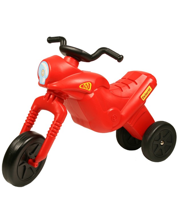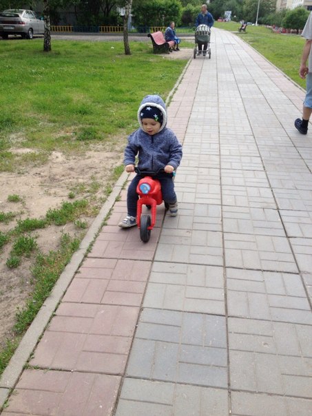 Производит их Венгрия. У нас каталка на возраст от 1,5-2,5 лет. Сейчас сыну почти 2,2. Кататься ему очень нравится! Может по часу на ней колесить). Управляется мотоцикл отлично, руль простой до нельзя. Здесь равновесие держать не нужно, за счет двух задних колес, каталка устойчивая. Такой вот первый шаг к беговелу. Сам мотоцикл очень легкий, меня совсем не напрягает носить его в руках. Он целиком из пластика, в том числе и колеса, но я бы не сказала, что они сильно гремят. Более того, каталка еще и очень проходима, у меня сын любит свернуть на ухабистую тропинку, ничего, проезжает). И на бордюры сын поднимается и спускается вместе с мотоциклом, я только придерживаю руль. В общем, я очень довольна нашей каталкой. Да еще за такую цену вдвойне приятно.