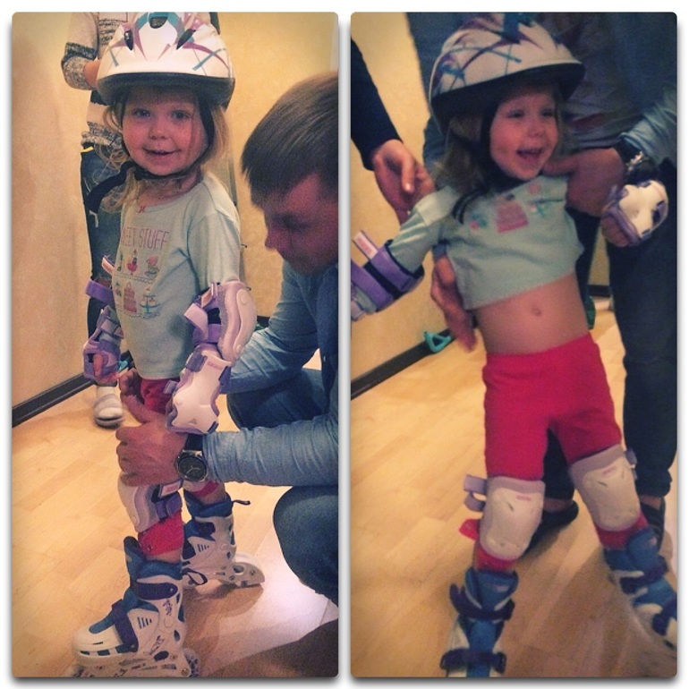 Не так давно Аринина бабушка решила подарить ей ролики со всей экипировкой, сумкой к ним, доп. перчатками и носками (покупалось все в Спортмастере. Все качественное, прочное и красивое-"девочковое"). Я, честно говоря, не представляю, как таких малышей ставить на ролики. По дому-то мы "катаемся" изредка, но все это очень тяжело и неустойчиво. Я накачала разные видео по обучению, но пока так и не начали. Скорее всего это только после 3-ех лет.