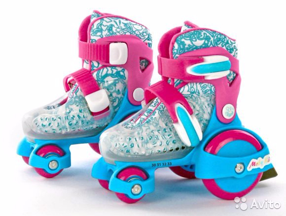 4.Ролики-квады.Доча с умилением смотрит на всех роллеров,говорит что тоже будет кататься)))Скажу честно-бегаем мы так что как хрюшки от падения вечно грязные,поэтому от роликов в колесами в один ряд отказались,нашла квады,пощупала в магазине,сначала хотела размер 26-29,но внутри сапожок всё таки маломерит,взяли 30-33,если даже и велики будут-не критично сейчас))Стоимость через интернет 2275 руб.
