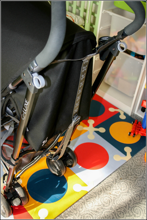 Так же имеется ремень для переноски коляски в сложенном виде. Он регулируется по длине и его можно полностью снять при ненадобности или для для стирки. Нет подушечки для плеча. Это не критично, но могли бы уж.