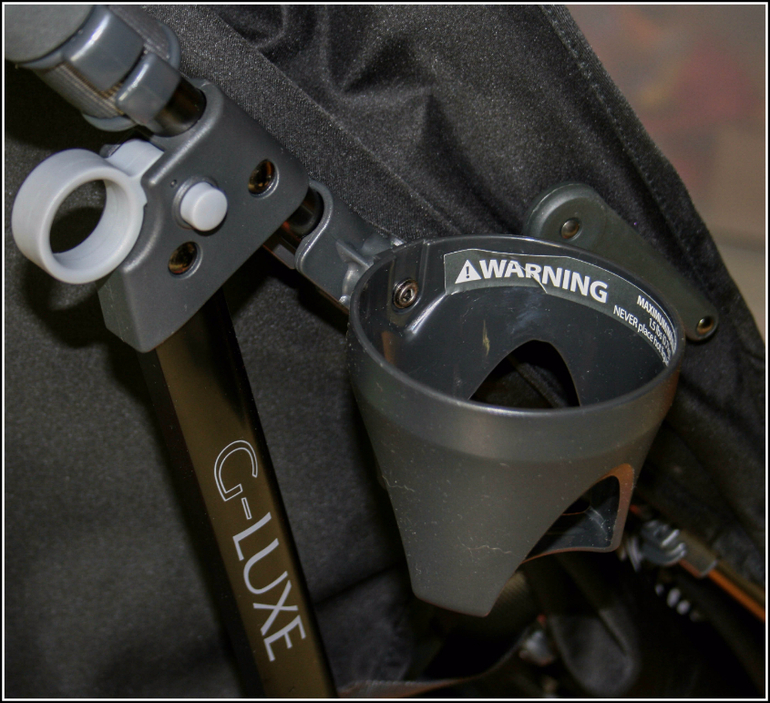 К коляске прилагается съемный подстаканник, но фиксируется он только с правой стороны и не меняется уровень наклона.