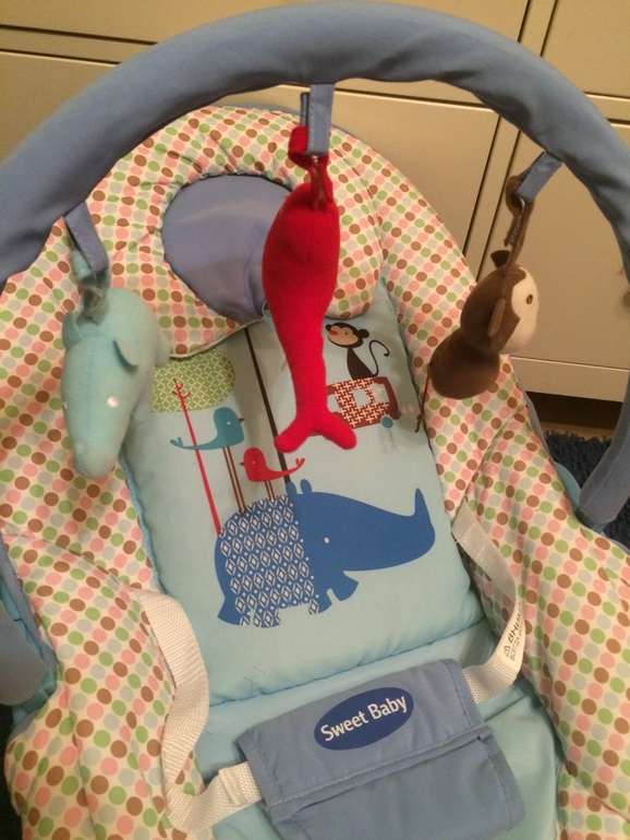 Сразу отсекла дорогие, заумные модели. Перерыв не один интернет магазин выбрала шезлонг Sweet baby zoo, так как у нас мальчик выбрала, конечо же голубой