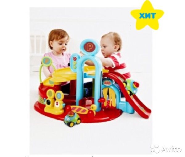У нас первая с треком. Хорошая, добротная, качественная парковка. Машинки — набор из елс и другие, подходящие по размеру.