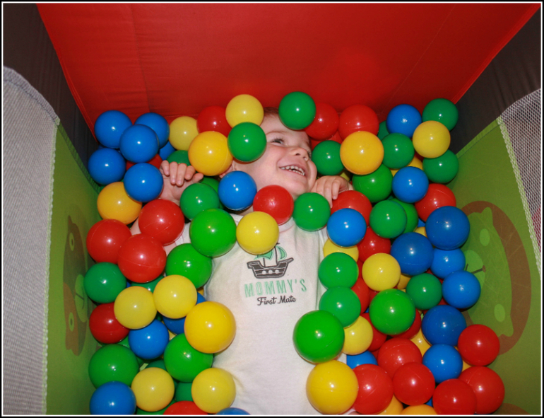 Вне поездок на дачи и путешествий наш манежик не пылится в углу, а во всю используется как сухой бассейн, пока палатка Данику приелась. Ближе к НГ уедет выполнять роль манежа (с шариками) к племяшу.