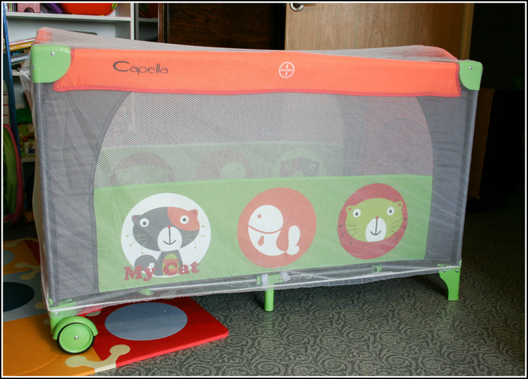 К кроватке прилагалась москитная сетка, но, к сожалению, она прикрывает только верх кроватки, а в большие дыры сетки по бокам комары влетают как к себе домой даже не притормаживая в полете. (Если кому нужна - пишите, отдам). Поэтому вспомнилась мне наша сетка Москитолл, которую я забыла взять в Грецию, и вот тут она просто чудесно пригодилась!!! Закрывает все и сразу. Лаз можно приоткрыть.