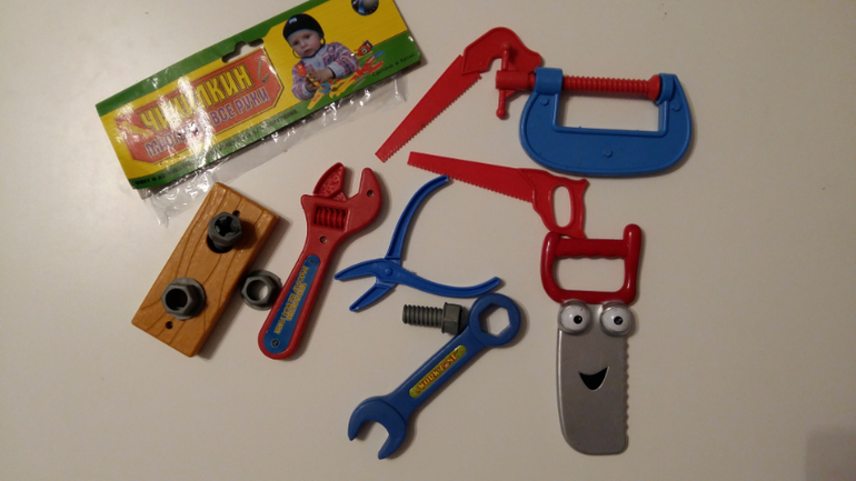 . Пришел совсем не такой как на картинке.Набор ужасный!!!Обшарпанный,у пилы зачем-то глаза,все хлипкое.