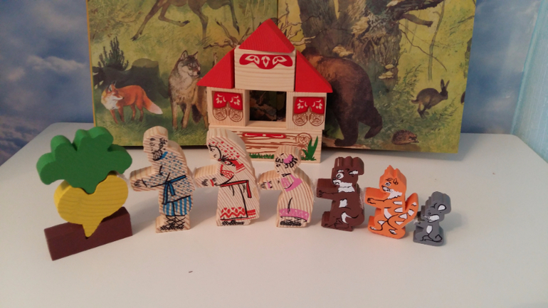 Про репку хочу поподробнее сказать.Все герои сказок на липучках и ребенок может тянуть по-настоящему за мышку и репка вытащится.