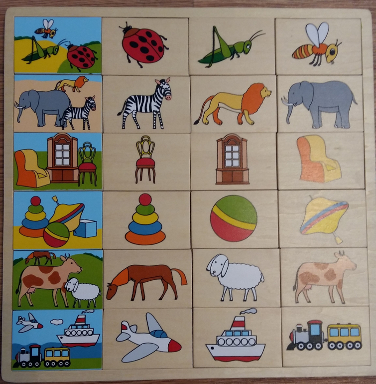 Очень большая рамка-вкладыш "Собери в ряд" помогает ребенку учиться выстраивать логические цепочки, группировать вещи по общему признаку, видеть общее в деталях
