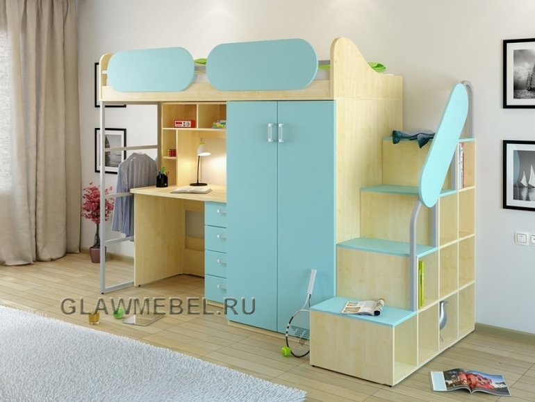 У нас модуль с рабочей зоной, только кровать не под потолком, она называется Калейдоскоп. Кровать трансформируется в стол, нам нравится и стол огромный и кровать удобная не нужно лазить, места для учеников и прочего достаточно, у меня дочки 12 лет, 6 класс( это чтобы оценить сколько много ей нужно для учебы).