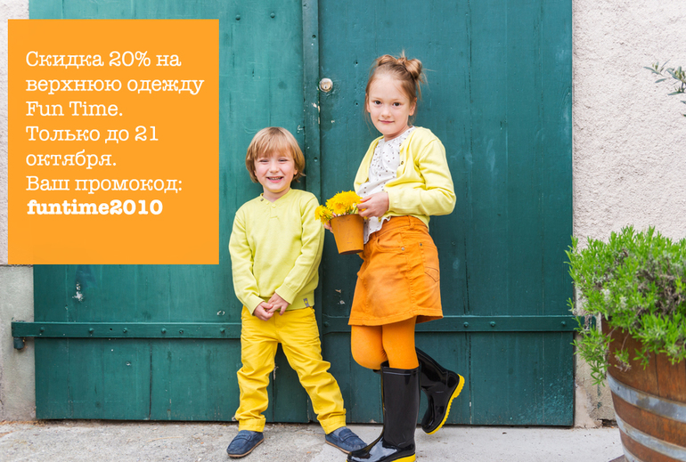 Скидка 20% на верхнюю одежду Fun Time. Только до 21 октября
