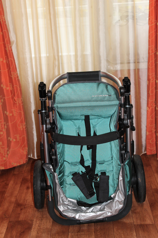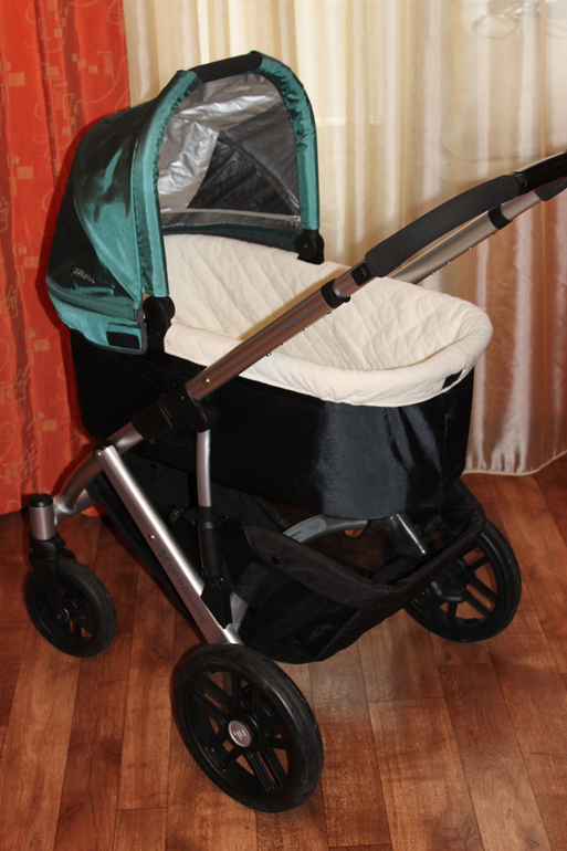 Для начала скажу, что коляска нам досталась в очень красивом изумрудно-зеленом цвете, который подойдет и для мальчиков и для девочек. Все чехлы на этой колясочке съемные, выполнены из качественного приятного на ощупь материала и при необходимости снимаются и стираются.