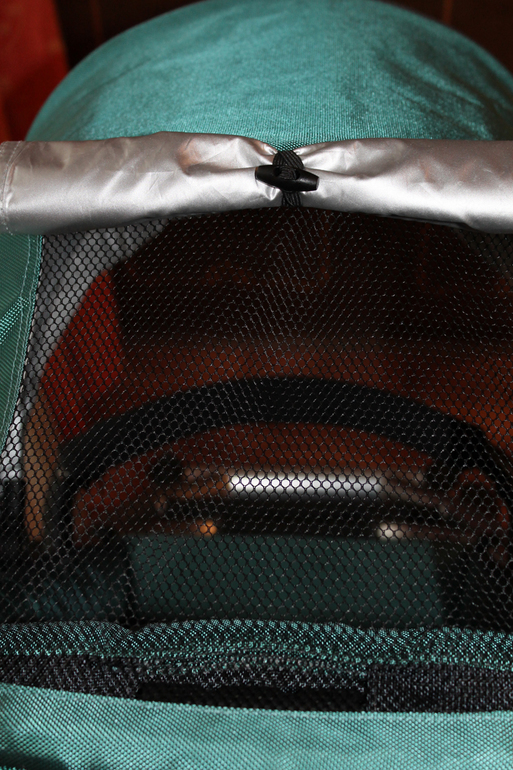 Сзади капора можно расстегнуть молнию и оставить сетку - это для жарких летних прогулок.