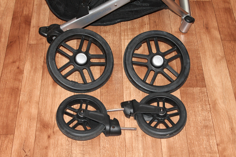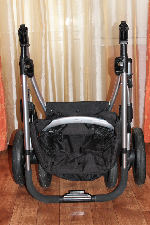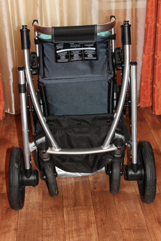 Итак, мы плавно подошли к рассмотрению колесной базы. На мой взгляд она немного громоздкая и довольно широкая, ее ширина 63см. Не знаю, проходит ли она в лифт, т.к. в моей пятиэтажке он просто не предусмотрен.Но в мой почти отсутствующий коридор она прошла с трудом и еле вписалась в поворот из коридора в комнату. Но! Из этой ситуации тоже можно найти выход. Потому что все колеса коляски снимаются без применения дополнительных интрументов, просто легким движением руки. Это очень удобно, когда надо помыть колеса, пройти в узком пространстве или запихнуть в маленький багажник.