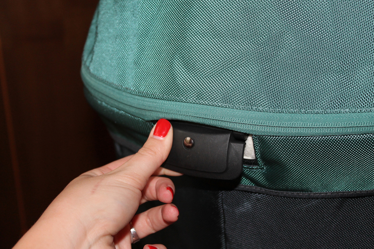Чтобы снять маленькие колеса, нужно потянуть на себя кнопку со стрелочкой.