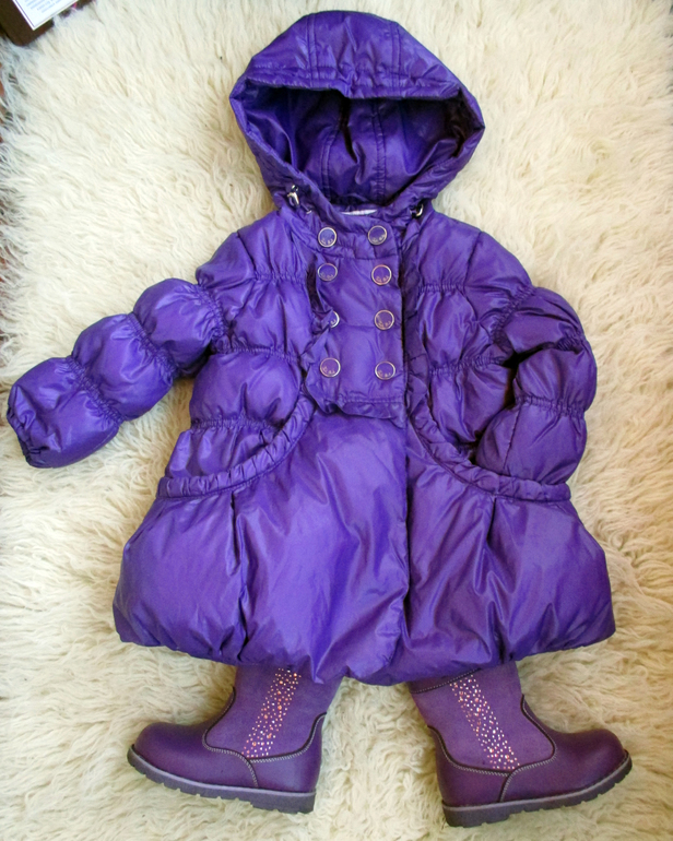 Наше пальто и сапожки на выход, у пальто внутри пух и перо, без флиса, но очень милое.