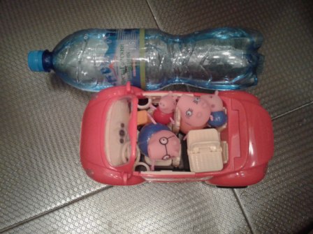 А еще я как-то увидела домик Пеппы и решила посмотреть, нет ли чего-то похожего на Али... увы, поиски были безрезультаты, китайский "дом Пеппы" совсем неудачный, и не дом вовсе, а ширма с мигалками от батареек... Но зато я нашла отличную машину и купила ее тоже! Машина отличная, те, что продаются в ДМ, не идут с ней ни в какое сравнение)) Детали и телефонофото: