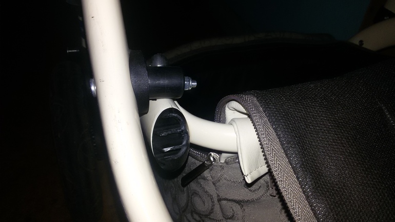 Выходили из лифта, стукнулись об дверь лифта и лопнула черная пластиковая соелинительная деталь на раме.