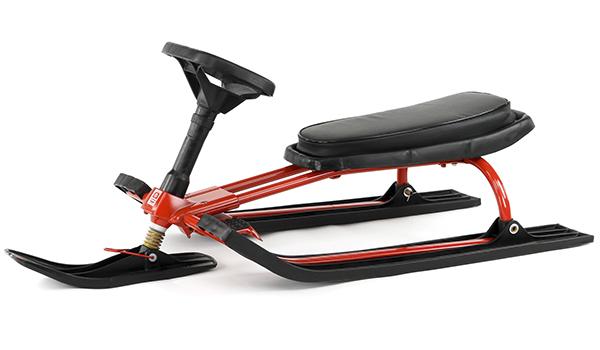 у нас тимка от 4 лет который. Вообщем высокий, нагрузка написано до 100 кг.Муж 85 кг и сын 20 кг. катались все отлично. 4 года уже снегокату, все отлично))