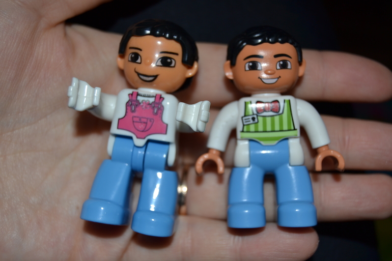 Вот две игрушки почти братья близнецы Лего и girls dream. На фото видно что мальчик из girls dream (розовый фартук) чуть больше Леговского, поэтому он туго вставляется в пазы, с остальными детальками проблем нет.