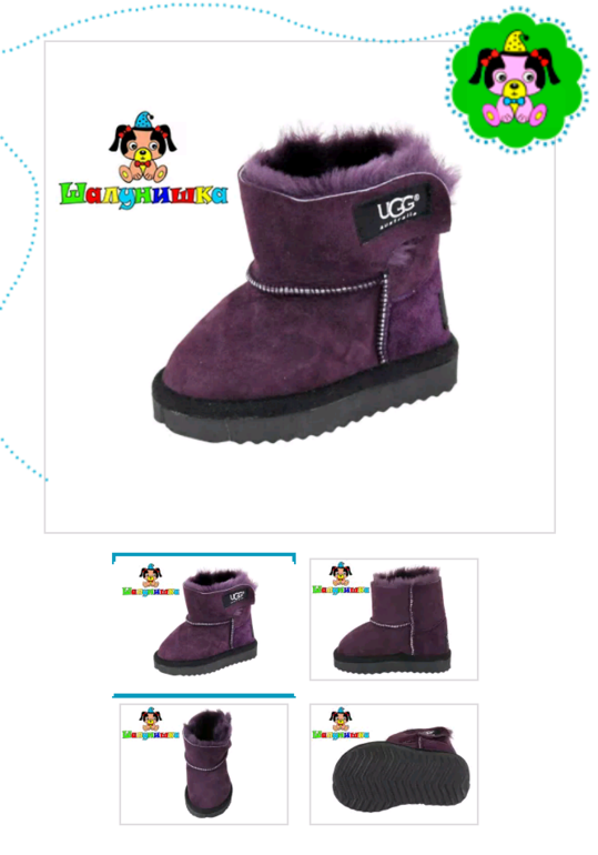 Детская обувьУ нас на зиму сапожки кожаные на овчине woopy ortopedic. До минус 5 мы спокойно гуляем в них. Но если холоднее и она бегает ножками, то у нас мерзнут пальцы на ногах. И я ей не разрешаю ходить больше 20 минут, так как знаю, что пальцы замерзли!( Сама ножка горячая, только пальцы холодные. Носок поддеть под них не могу, так как они на молнии иортопедические...плотно ооблегают ногу. Для нас это оказалось большой проблемой...ребенок хочет еще гулять...а мы не разрешаем и с криками и слезами идем домой!! Я сама мерзлячка...и у меня ноги не мерзнут в сильный мороз только в уггах. И вот я задумалась о покупке угг для дочери, как вариант носки в сильные морозы...носить их от -5 до -15. Я знаю, что это не очень хорошая обувь с ортопедической точки зрения. Но думаю, что ничего не случится, если она пару часов пару недель за зиму их поносит. У нас морозы не долго держатся. На настоящие австралийские угги у меня денег нет. Вот искала альтернативу и наткнулась на угги турецкой фабрики (фото с сайта "Шалунишка").