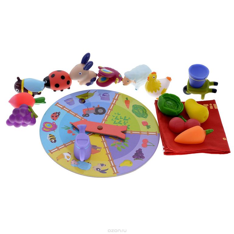 Играем по 5-6 раз в день. Уже наощупь все предметы различает кроме морковки и редиса, очень похожи между собой. Считаю, что цена очень завышена. Хоть качество и хорошее, интересно, но за 2,5 тыс 15 резиновых игрунек, кружок со стрелочкой и мешок тканевый (у нас еще и дырявый попался) - это слишком по-моему.