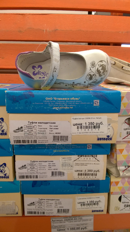 Там можно дешево купить обувь прошлогодних моделей как на детей, так и на взрослых. Но каждая поездка туда - это на удачу. Будет ли нужный размер, или нужная обувь по сезону... не узнаешь пока не приедешь. Хороший выбор с 19-22 размер на малышей и цены весьма приятные. Производители Китай или Россия. Котофей, Little Deer, Bebelite и пр.
