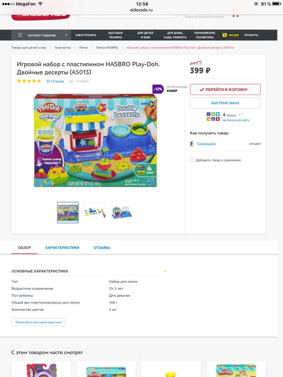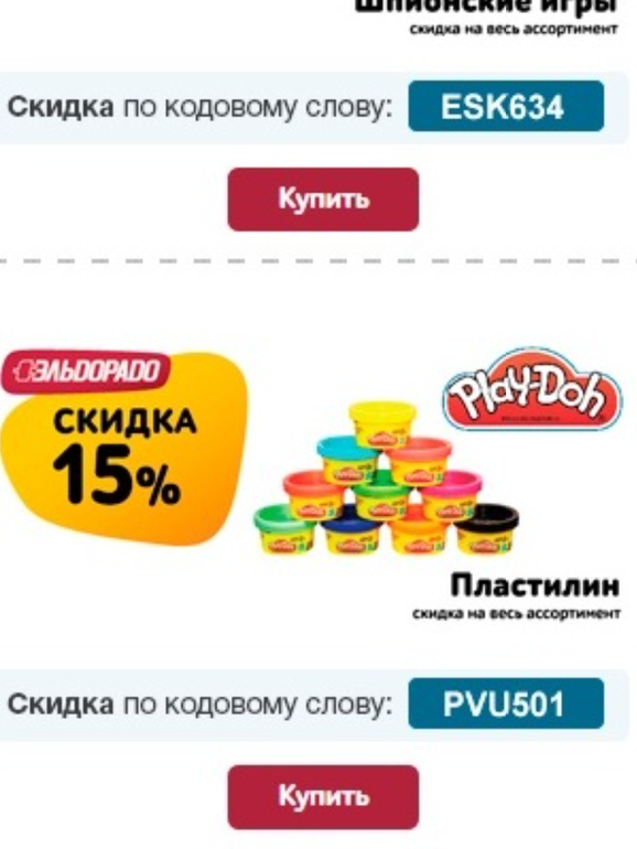 Скидки на некоторые наборы Play-Doh+доп. промокод)