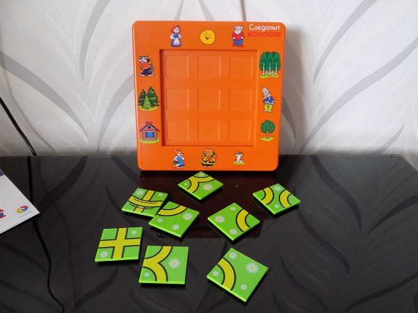 Игровое поле, оно же коробка для хранения, разделено на 9 частей и имеет 9 элементов с дорогой один на фотку не попал, спрятался.