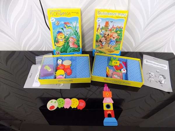 Похожие по сути игры. За те деньги что они стоят я купила обе, чтобы играть в двух плоскостях. Задача очень простая, построить замок или вырастить тело гусеничке в соответствии с цветом выпавшем на кубике.