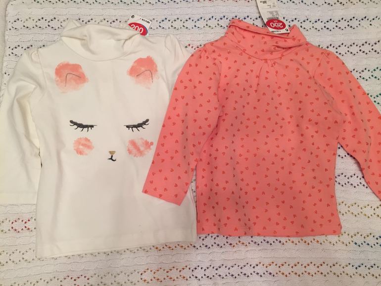 Два лонгслива-водолазки по 200 рублей-их там на девочек было много и выбор был приличный.