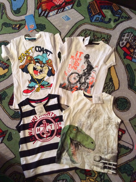 Майки большемерят. Штаны в размер. А вот с футболками не угадаешь- какие-то в размер, а другие большемерят. Одну заказала 3-4 года, а пришла лет на 5