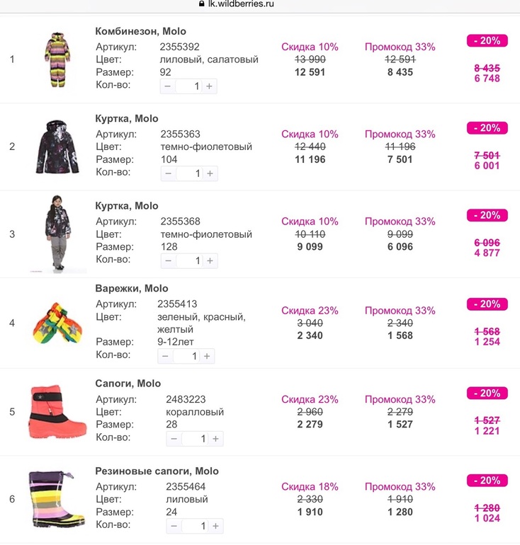Распродажи. Скидки. Акции.На вайлдбериз скидки на Моло 10% плюс по промокоду зима 2016 еще 33% 1d239a20