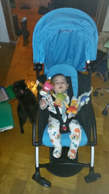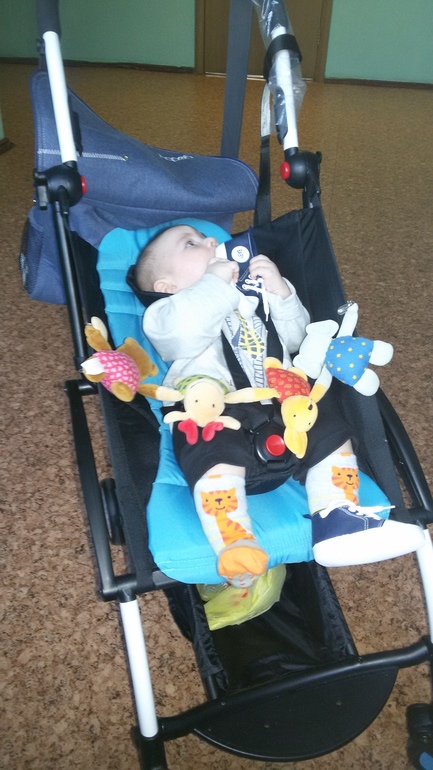 Идея была на нашей большой коляске доехать по улице, а в помещении перегрузится в йо йа.поэтому крвшу я сняла.