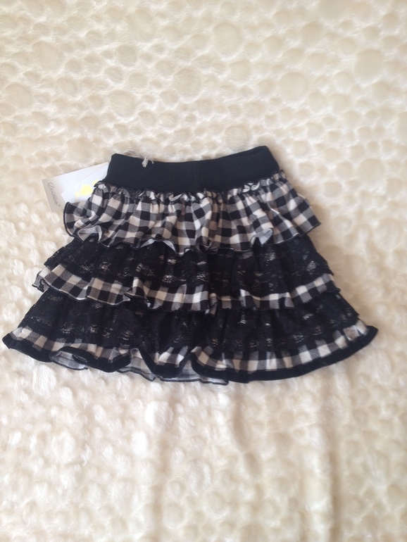 Юбка. Сначала взяла 122 размер, но она на дочку 102 см - впритык! Пришлось сдать и взять побольше. Юбка не кривая, это я так ее положила и сфотографировала))