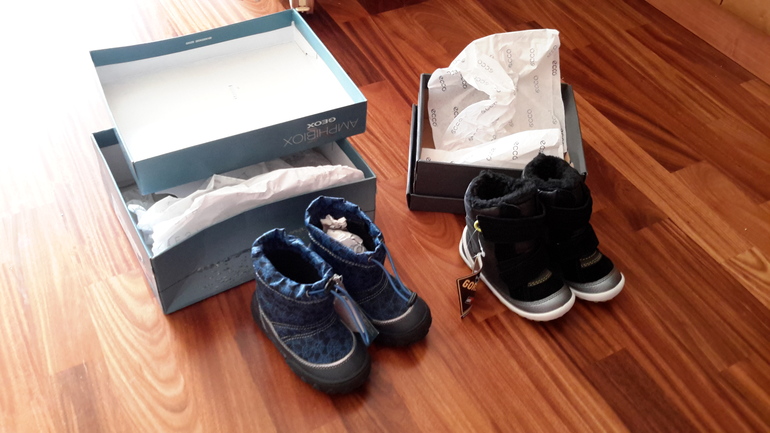 Утром в субботу заехала в Аутлет Белая дача (была там первый раз). Ехали по делам и муж на часик завез посмотреть. Зашла в любимый geox (эту обувь покупаем мужу много лет, пару раз покупала туфли себе, сыну покупали две пары сандалей, качество всегда радует, правда цена очень сильно выросли в последнее время на мужскую обувь). Хотела купить сыну на осень и зиму сапоги или ботиночки. Выбор на мальчика не очень большой, на девочку гораздо больше. И размеров маловато. Я смотрела 22-24 Сфотографировала только для мальчика обувь: